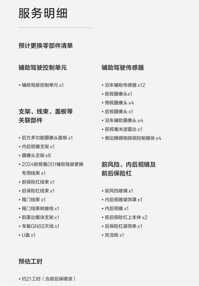 2024款极氪001辅助驾驶更换-部分零部件样件)