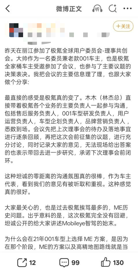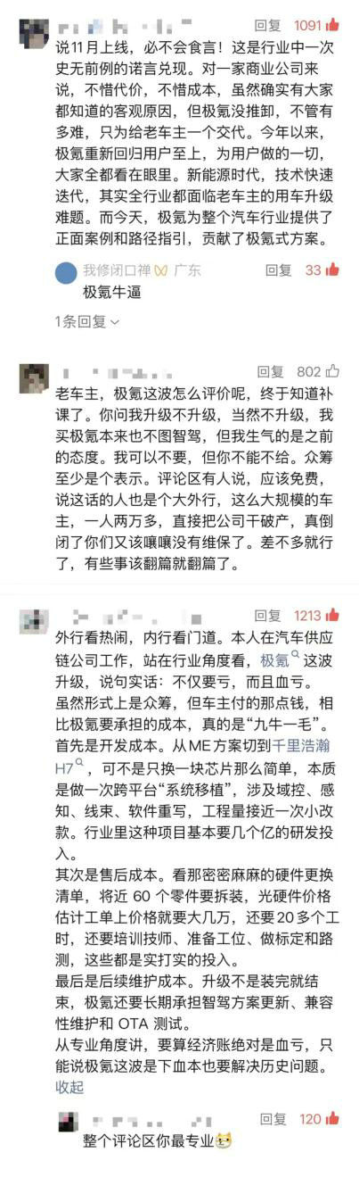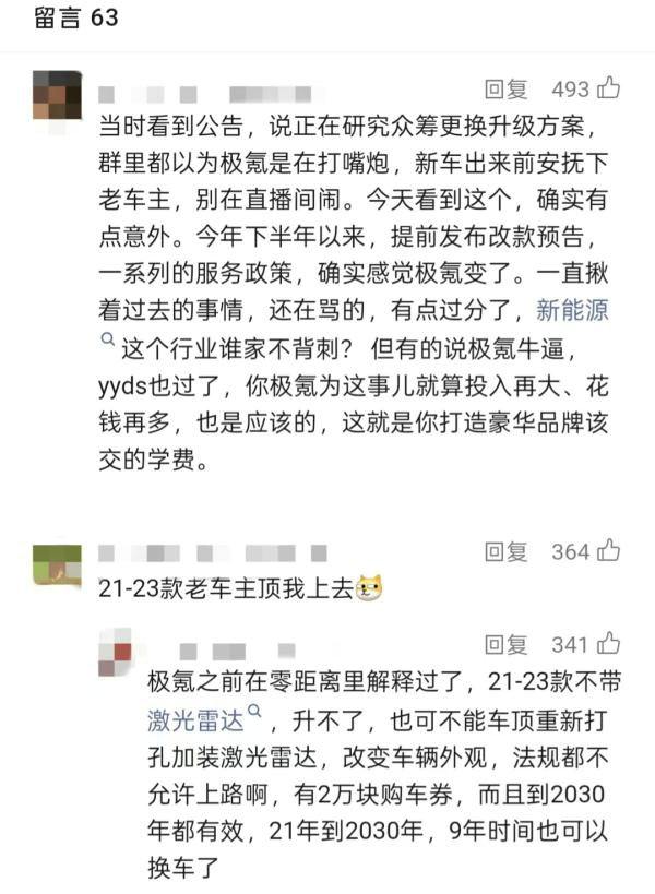 “之前总吐槽极氪,跟行业很多品牌一样只管卖新车,忘记老用户,但这次极氪愿意为老车主升级辅助驾驶系统,不管众筹成不成功,态度确实是到位了。”一位极氪001老车主评论。类似的声音还有很多,不少用户认为,极氪在这几年新能源汽车快速迭代的过程中,虽然走过弯路,但今年开始明显“听劝”了,正在变得越来越好。